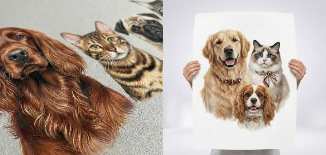 Birçok evcil hayvan portresi dijital olarak çizilip baskıya alınır. Oysa gerçek el çizimi evcil hayvan portresi, tamamen sanatçının eliyle, kağıt veya tuval üzerinde üretilir.