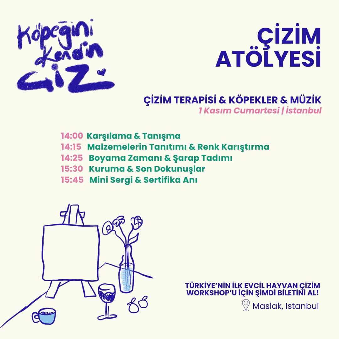 Evcil hayvanını sadece fotoğraflarda değil, kendi ellerinle çizdiğin bir tabloda görmek ister misin? Türkiye’nin ilk evcil hayvan çizim atölyesi “Köpeğini Kendin Çiz”, şimdi Maslak’ta seni ve patili dostunu bekliyor! 🐶💗