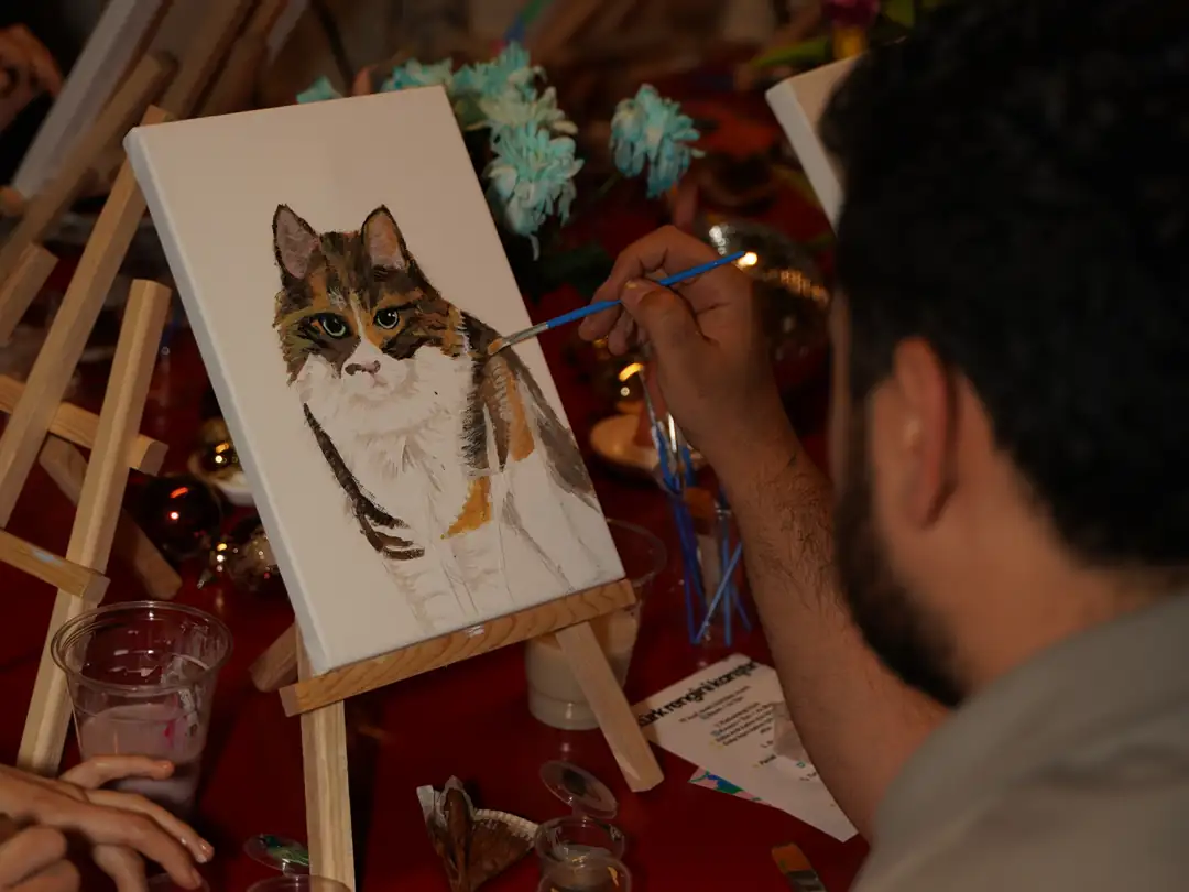 Katılımcılar, yüksek kaliteli akrilik boyalar ile adım adım yönlendirilerek kendi kedi portresi tasarımlarını veya köpek portresi çizimlerini gerçekleştirdi. Bu süreçte amaç mükemmel çizim değil; bağ kurmaktı, kahkaha atmaktı, paylaşmak ve hissetmekti.